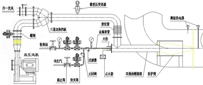 針對風(fēng)道(煙道)等需要加熱或輔燃的使用場合,如脫硫脫硝系統(tǒng)煙氣加熱系統(tǒng)、一氧化碳處理等。系統(tǒng)特點(diǎn)如下: